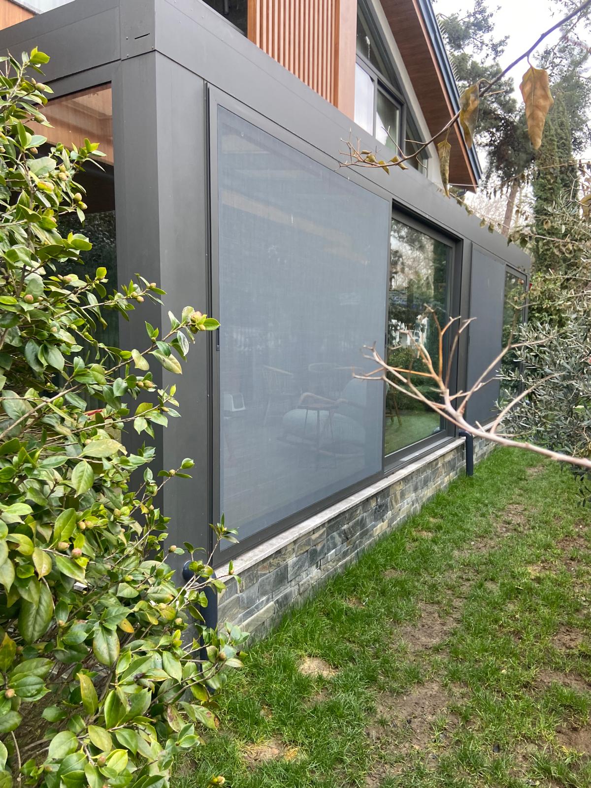 Windfestes Textilsystem für Sonnenschutz im Außenbereich